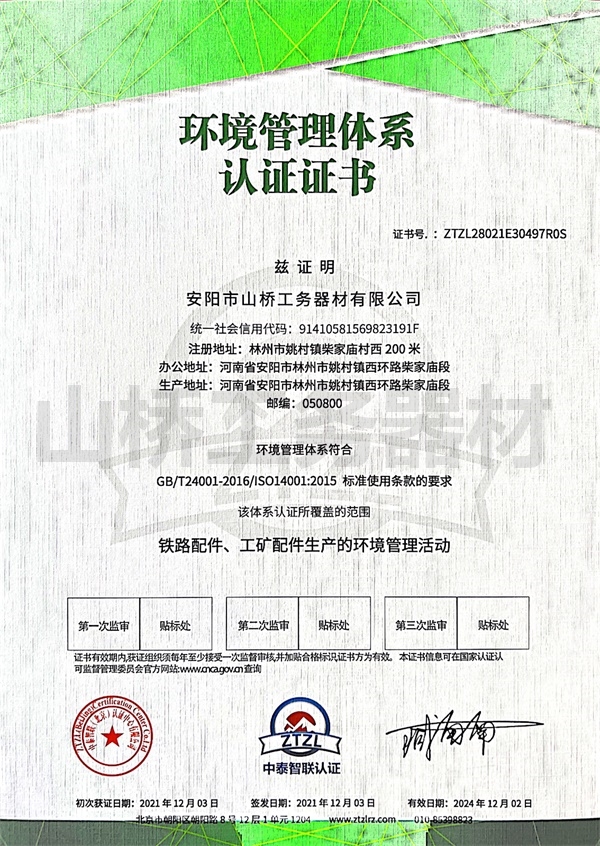 环境管理体系认证证书